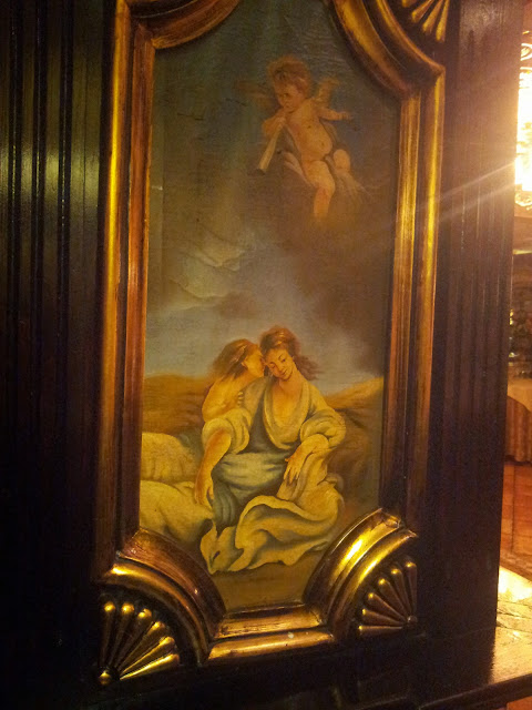 Am fost ieri la o nunta la hotel Ambassador. Locatia are accente baroce placute, e solemna, ceva gen Cuza din Unirii, iar mancarea a fost foarte buna. Placerea a inceput cu decorul extravagant al mesei de fructe, a continuat printr-unul, doua, trei pahare de Martini cu un aperitiv potrivit, supa rasol de pui, sarmalute cu mamaliguta, ca totul sa culmineze cu minunatul escalop banatean cu orez sarbesc... Un deliciu... Asociat lor, cartofi aurii cu piept de pui Ambassador...